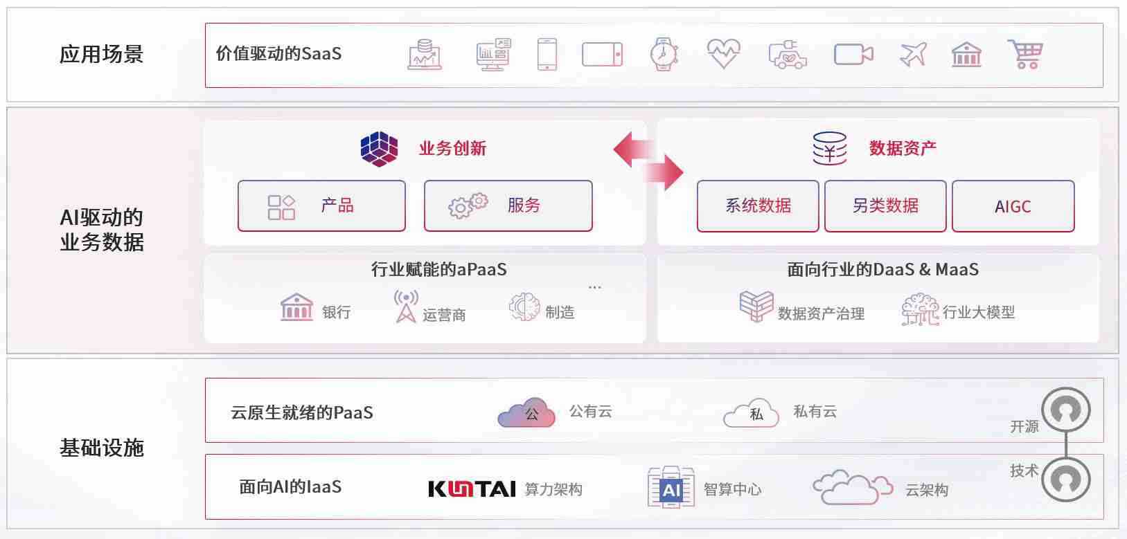 数字时代,,,围绕企业数字化转型的关键要素,,988PAY钱包数码开创性的提出数云融合战略和技术体系框架,,,着力在云原生、、数字原生、、、AI原生和信创产业上架构产品和服务能力,,,为处在不同数字化转型阶段的快消零售、、、汽车、、、金融、、、医疗、、政企、、、教育、、、运营商等行业客户提供泛在的敏捷IT能力和融合的数据驱动能力,,构建跨界融合创新的数字业务场景和新业务模式,,助力企业级客户建立面向未来的核心能力和竞争优势,,,全面推动社会的数字化、、、智能化转型升级。。。。
