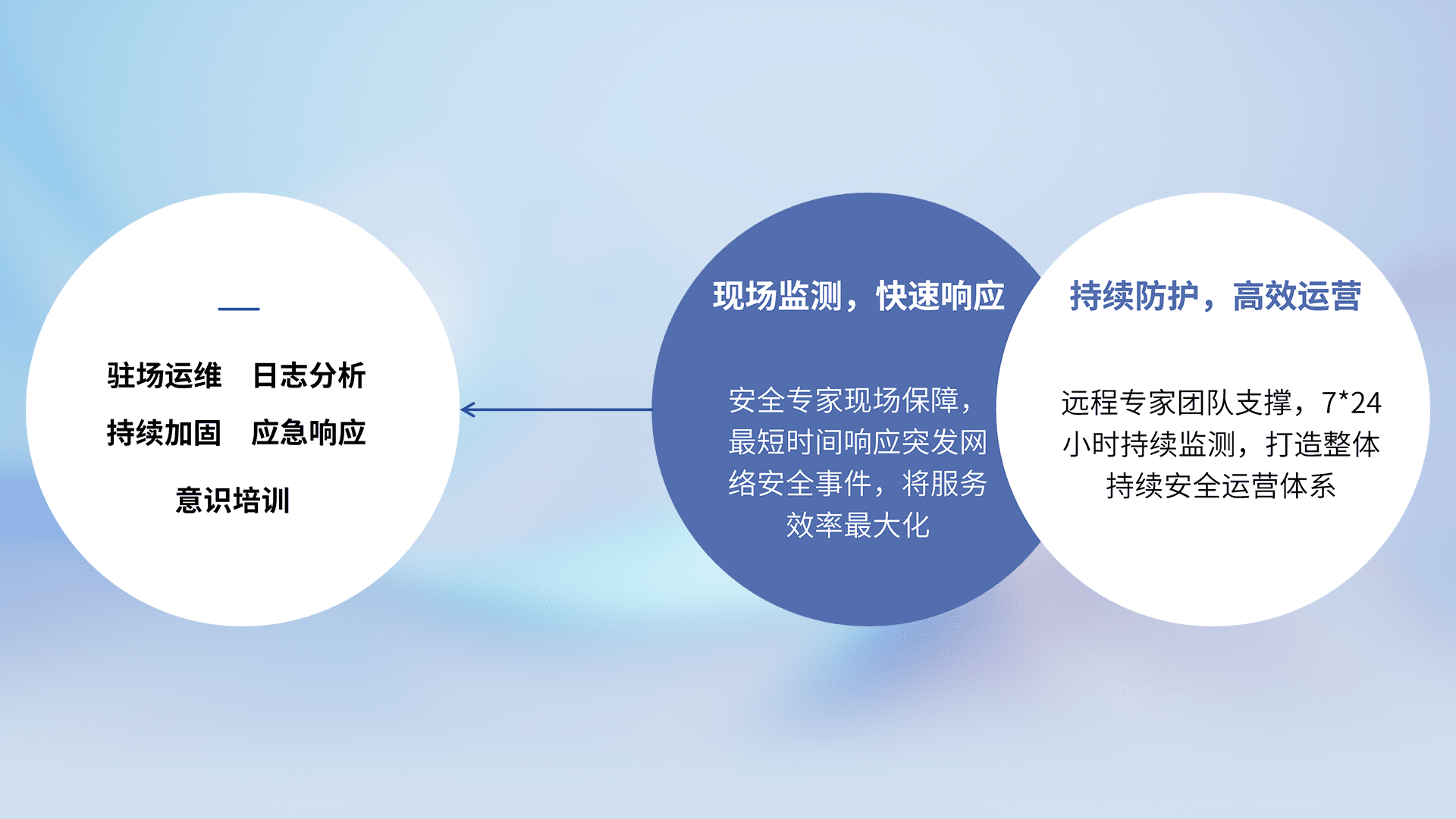 7X24小时持续监测安全事件,保持安全策略有效性,降低资产脆弱性风险,,,精准拦截黑客攻击,,减少被黑客利用的机会,,,第一时间遏制,,,降低损失。。